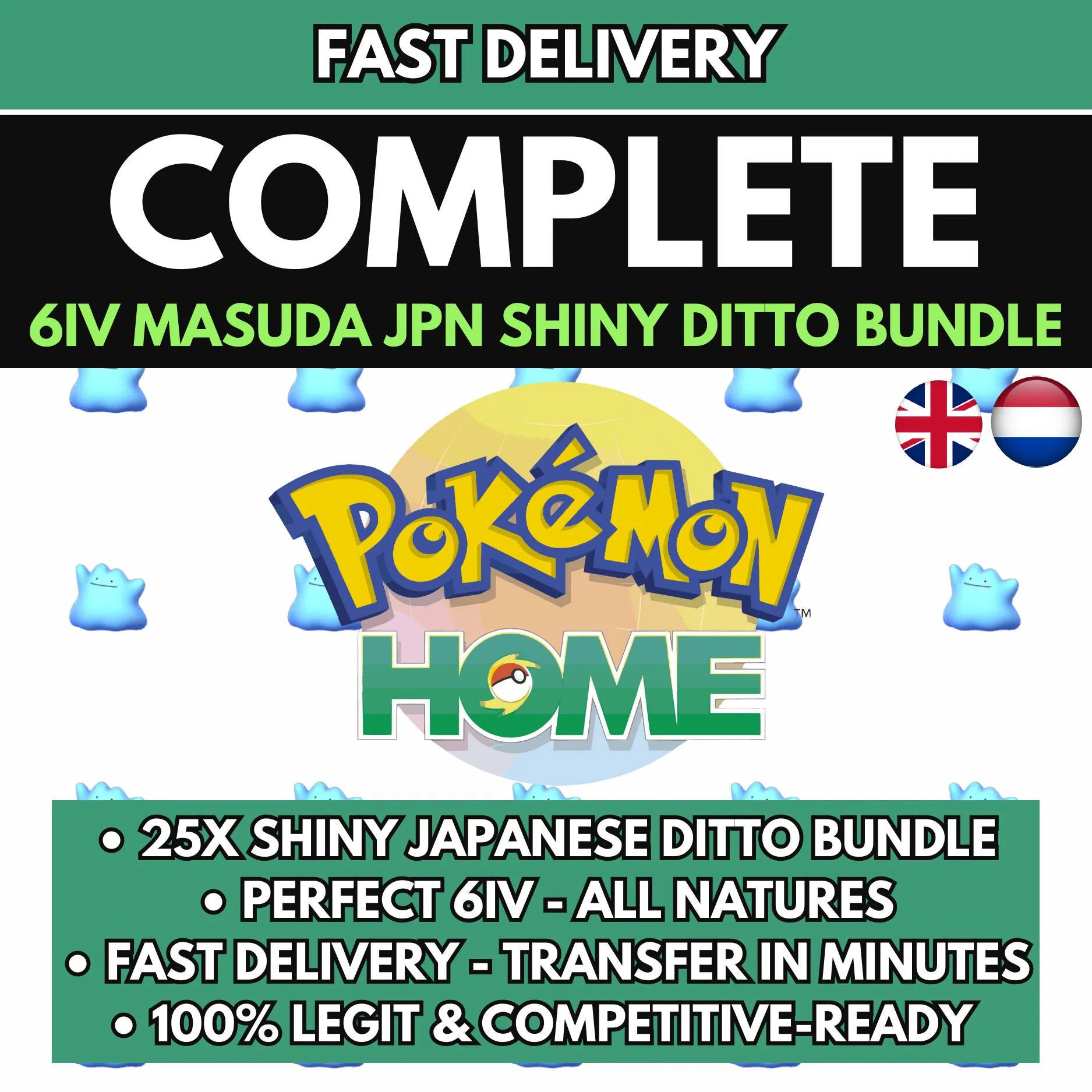 25x SHINY 6IV DITTO Japanese Masuda Bundle / Pokémon Home Transfer Scarlet Violet / Perfect IV Breeding Ready Shiny Pokémon Pack
