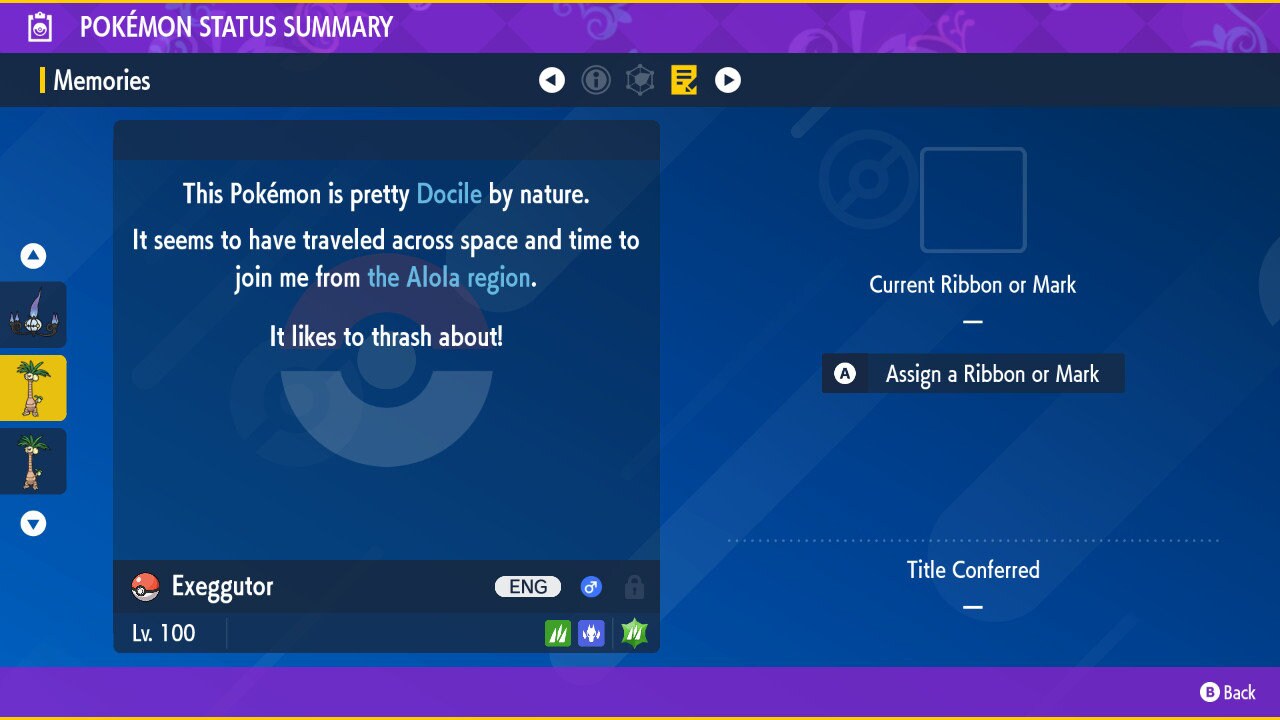 SHINY 6IV Alolan EXEGGUTOR / Pokémon Scarlet Violet / 6IV Pokemon / Shiny Pokemon / Competitive / Hidden Treasure of Area Zero Teal Mask DLC