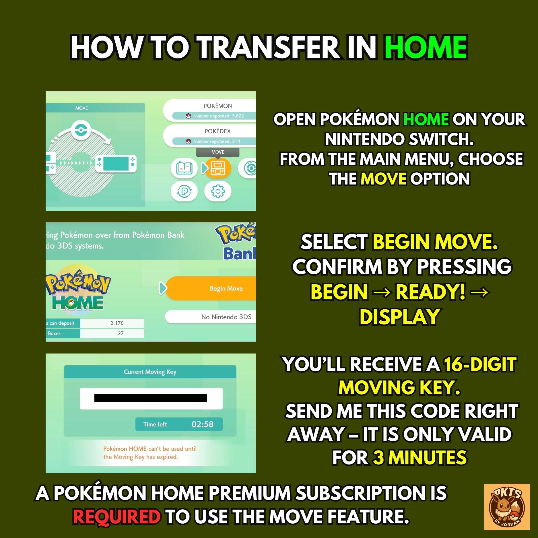 ⚠ A Pokémon HOME Premium Subscription is required for this transfer.