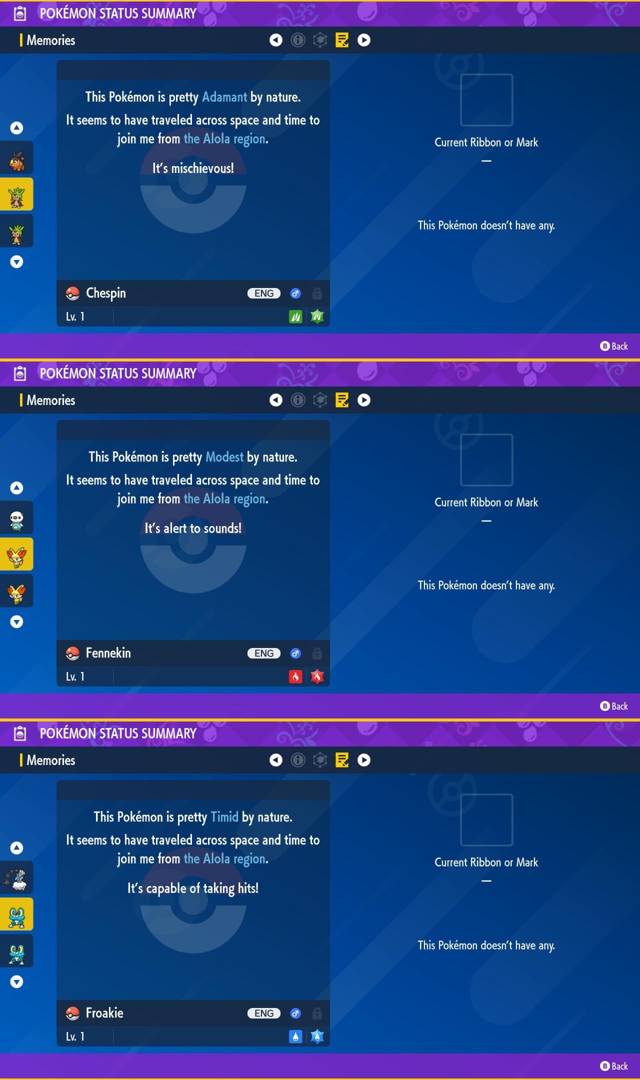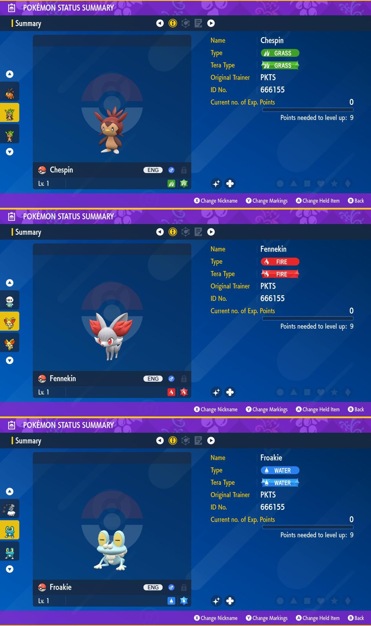 SHINY Chespin, Fennekin, Froakie Bundle Pack 6IV EV / Pokémon Scarlet and Violet / 6IV Pokemon / Shiny Pokemon / Free Shiny / EV Trained