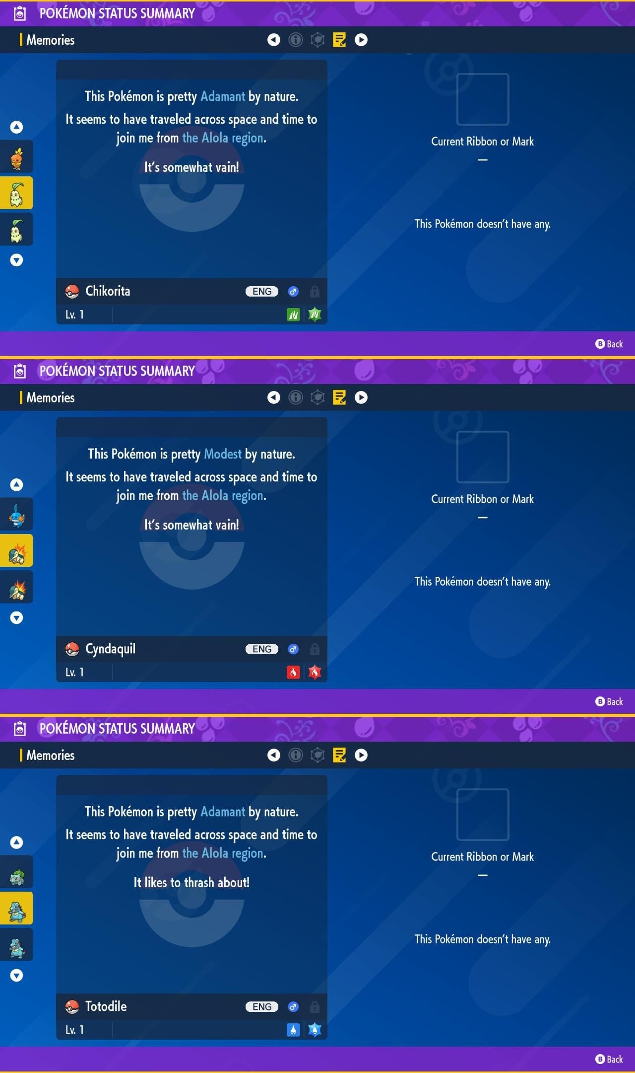 SHINY Chikorita, Cyndaquil, Totodile Bundle Pack 6IV EV / Pokémon Scarlet and Violet / 6IV Pokemon / Shiny Pokemon / Free Shiny / EV Trained
