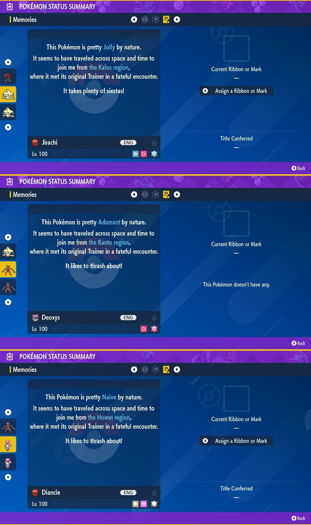 SHINY Jirachi, Deoxys, Diancie Bundle Pack 6IV EV / Pokémon Scarlet and Violet / 6IV Pokemon / Shiny Pokemon / Free Shiny / EV Trained