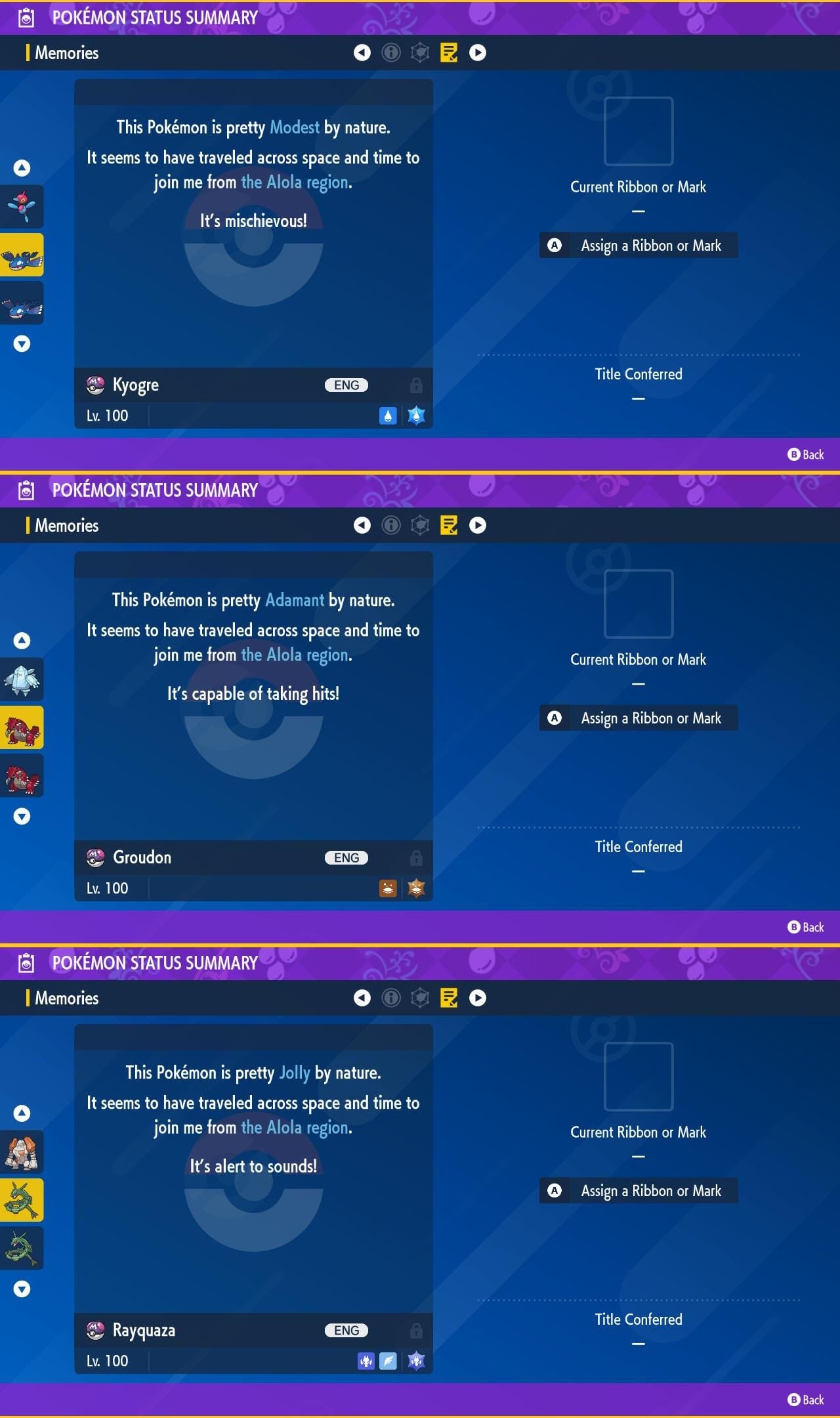 SHINY Kyogre, Groudon, Rayquaza Bundle Pack 6IV EV / Pokémon Scarlet and Violet / 6IV Pokemon / Shiny Pokemon / Free Shiny / EV Trained