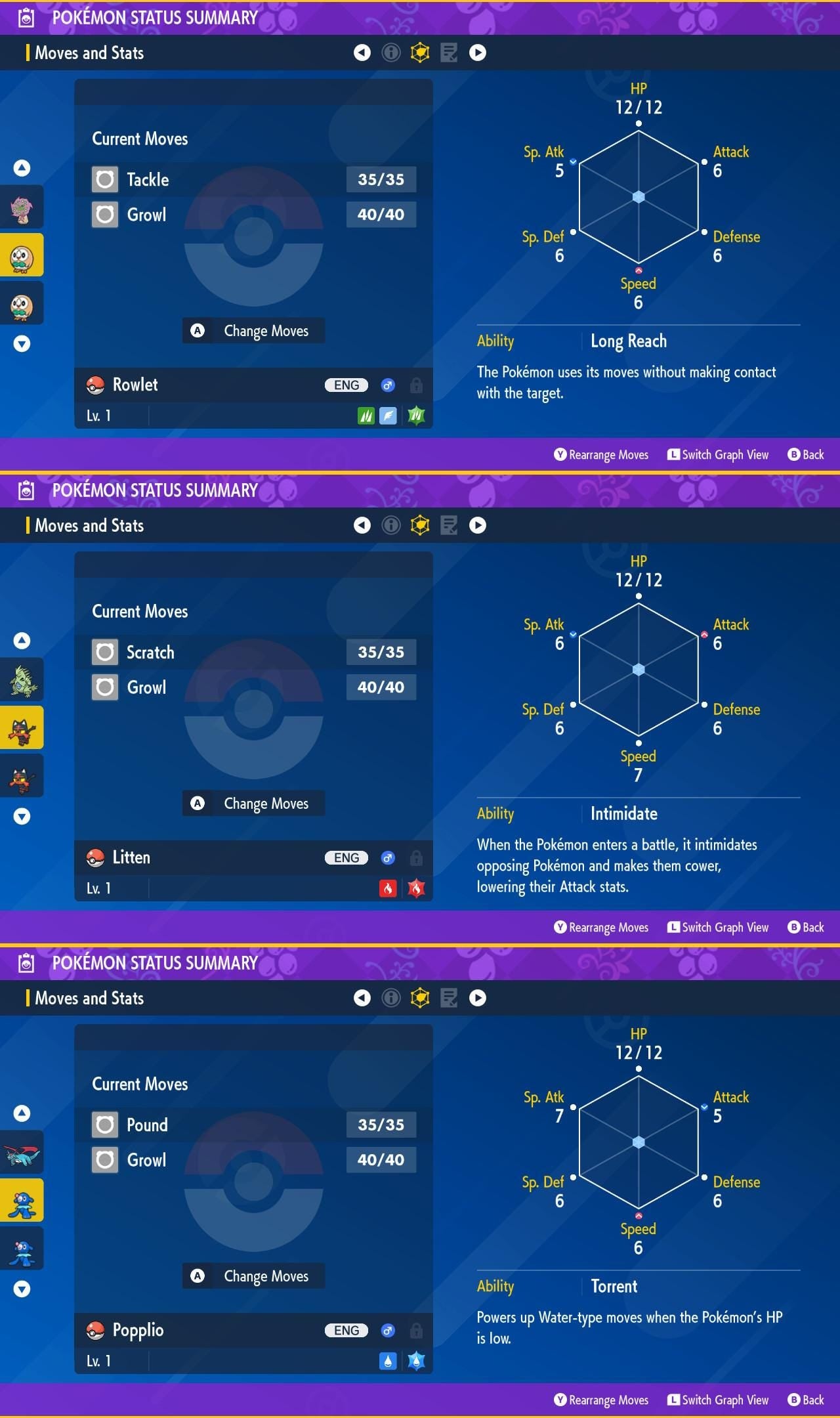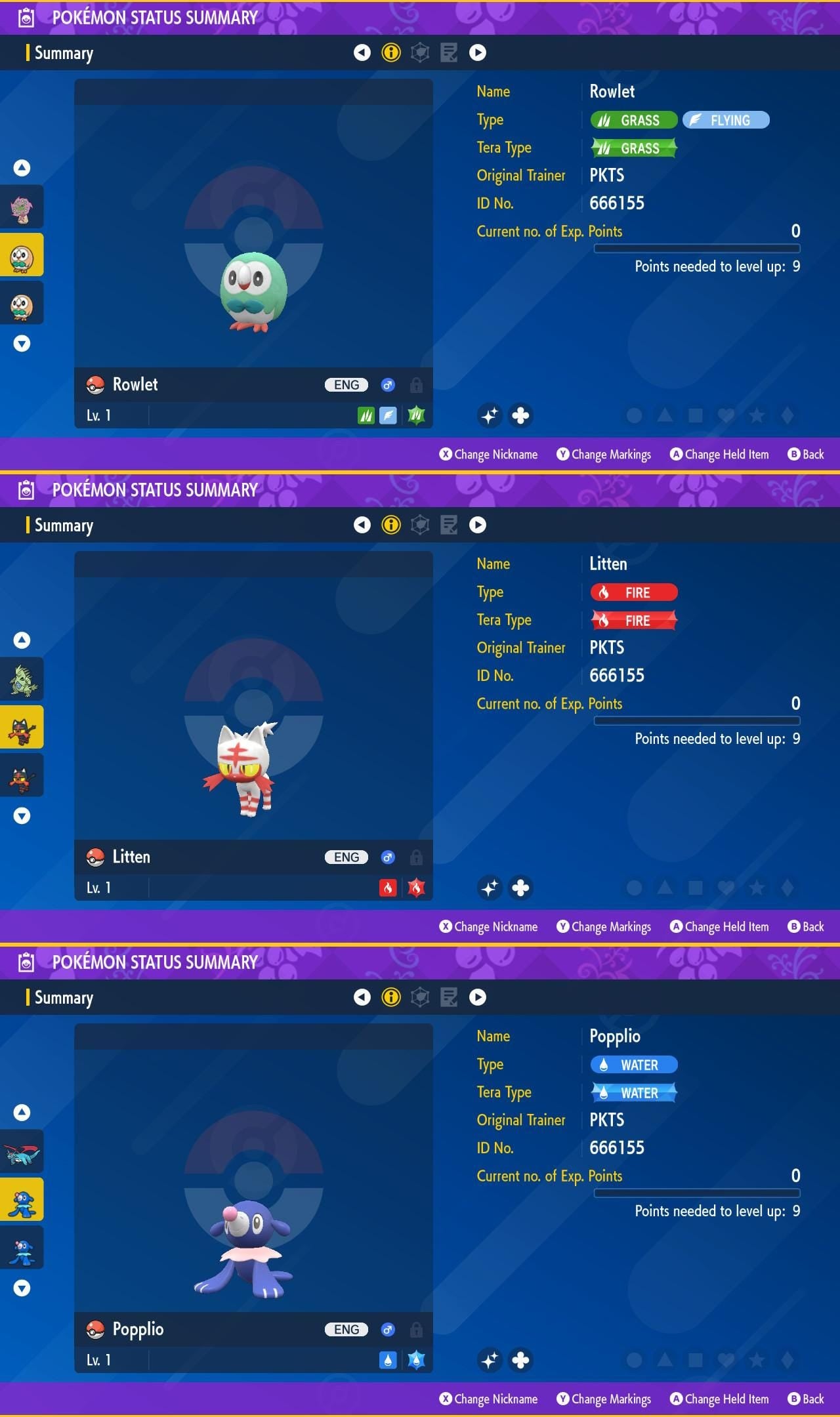 SHINY Rowlet, Litten, Popplio Bundle Pack 6IV EV / Pokémon Scarlet and Violet / 6IV Pokemon / Shiny Pokemon / Free Shiny / EV Trained