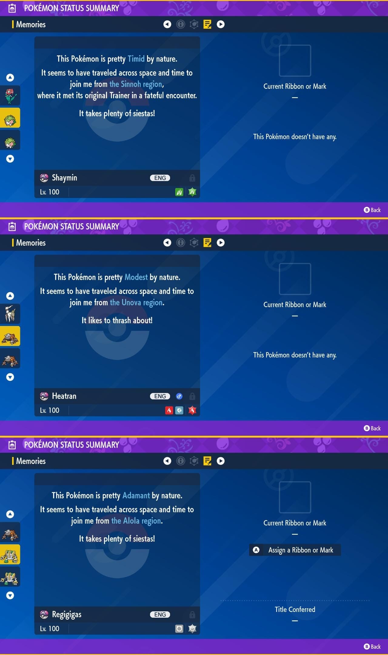 SHINY Shaymin, Heatran, Regigigas Bundle Pack 6IV EV / Pokémon Scarlet and Violet / 6IV Pokemon / Shiny Pokemon / Free Shiny / EV Trained