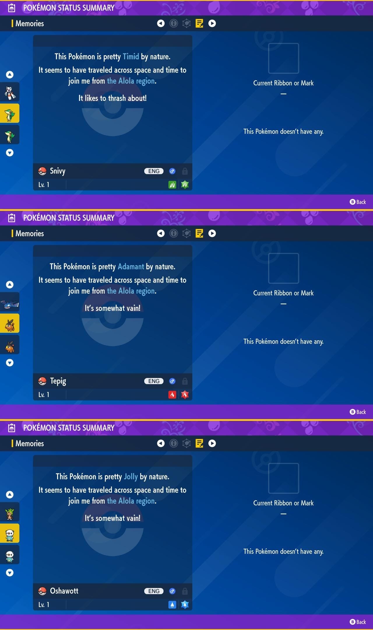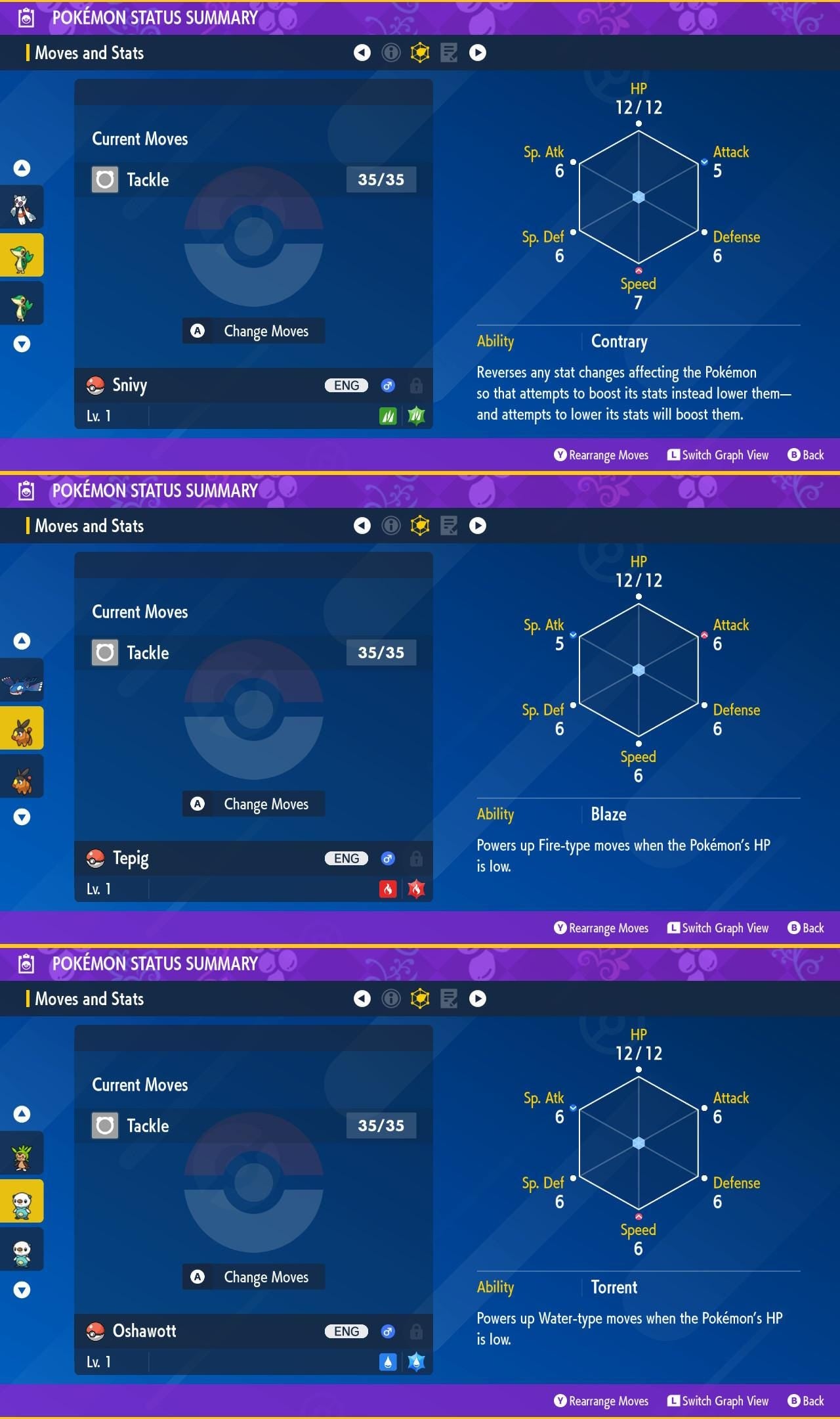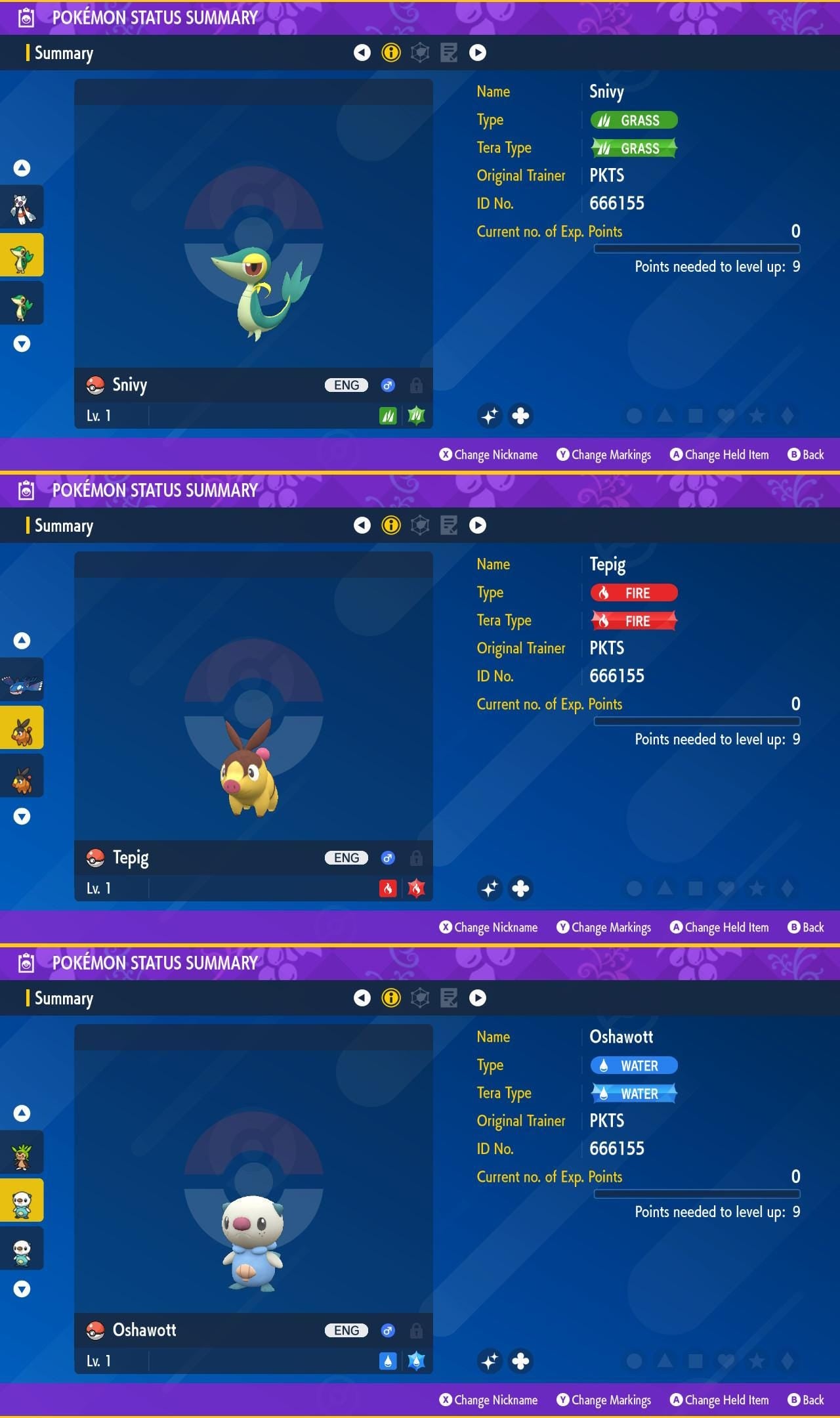 SHINY Snivy, Tepig, Oshawott Bundle Pack 6IV EV / Pokémon Scarlet and Violet / 6IV Pokemon / Shiny Pokemon / Free Shiny / EV Trained
