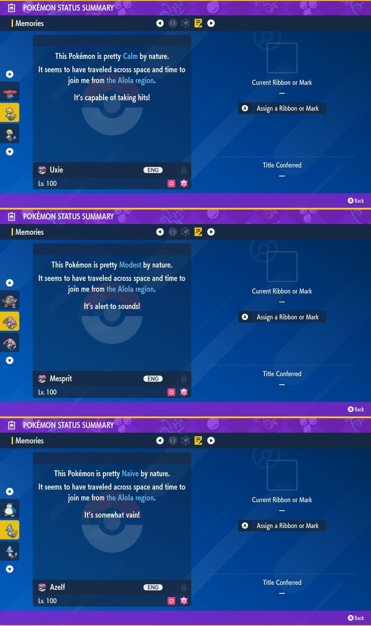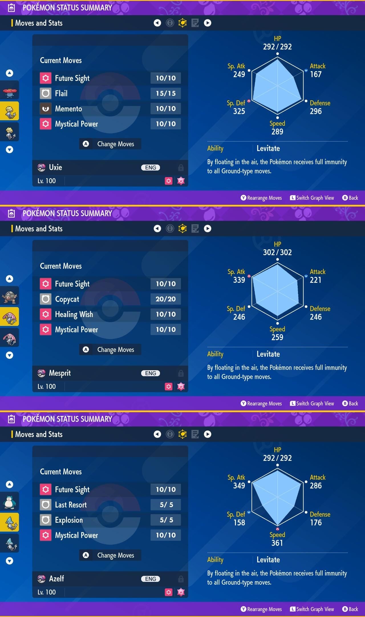 SHINY Uxie, Mesprit, Azelf Bundle Pack 6IV EV / Pokémon Scarlet and Violet / 6IV Pokemon / Shiny Pokemon / Free Shiny / EV Trained