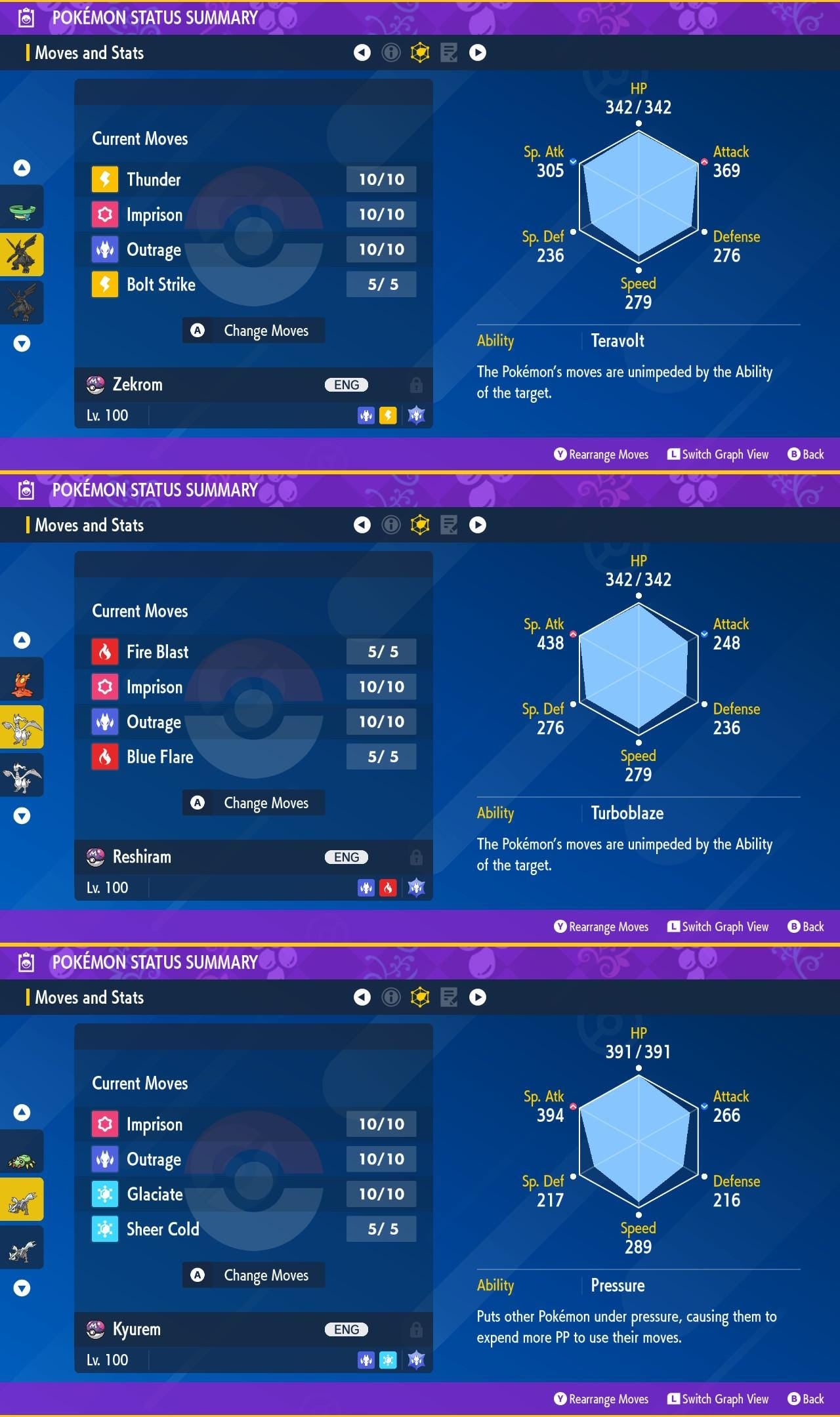 SHINY Zekrom, Reshiram, Kyurem Bundle Pack 6IV EV / Pokémon Scarlet and Violet / 6IV Pokemon / Shiny Pokemon / Free Shiny / EV Trained